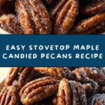 These Stovetop Maple Candied Pecans are a sweet and crunchy snack made by toasting pecans and coating them in a warm maple syrup glaze infused with cinnamon. Perfect for topping salads, desserts, or enjoying on their own as a delicious treat.