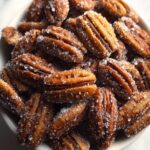 These Stovetop Maple Candied Pecans are a sweet and crunchy snack made by toasting pecans and coating them in a warm maple syrup glaze infused with cinnamon. Perfect for topping salads, desserts, or enjoying on their own as a delicious treat.