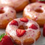 Mix the powdered sugar, strawberry puree, and just enough milk to create a smooth, pourable glaze. The fresh strawberry puree adds that natural sweetness and color that perfectly complements the doughnuts. Dip each cooled doughnut into the glaze, letting any excess drip off, and place them back on the wire rack to set.