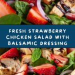A refreshing and vibrant Strawberry Chicken Salad featuring grilled chicken breasts, mixed greens, fresh strawberries, crumbled goat cheese, and crunchy pecans, all tossed in a sweet and tangy balsamic glaze dressing. Perfect for a light lunch or a summer dinner, this salad combines healthy proteins and fresh fruits for a flavorful and colorful meal.