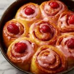 These Strawberry Cinnamon Rolls combine the classic warmth of cinnamon rolls with a fresh strawberry twist, perfect for a delightful breakfast or brunch. Soft, fluffy dough is layered with cinnamon sugar, fresh strawberries, and strawberry jam, then topped with a luscious cream cheese glaze infused with vanilla and a hint of heavy cream, creating an irresistible sweet treat.