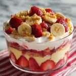 This Strawberry Crunch Banana Pudding is a delightful no-bake dessert featuring creamy instant banana pudding layered with fresh bananas and strawberries, topped with a crunchy mixture of vanilla wafers and freeze-dried strawberries. It’s easy to prepare, refreshingly fruity, and perfect for serving chilled on warm days or as a sweet treat after dinner.