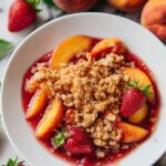 A delightful and easy-to-make Strawberry Peach Crisp Dessert featuring a juicy fruit filling topped with a buttery oat crumble, baked to golden perfection. Perfect served warm alone or with vanilla ice cream, this classic American dessert celebrates the fresh flavors of summer.