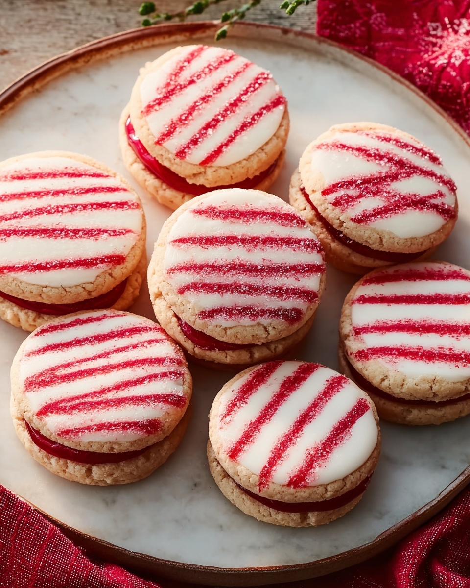 Striped Peppermint Sandwich Cookies Recipe - Recipe Image