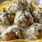 This creamy Swedish Meatball Pasta combines tender homemade meatballs with a rich, velvety sauce served over perfectly cooked egg noodles or fettuccine. A comforting and flavorful dish that merges classic Swedish flavors with a hearty pasta base, ideal for an easy weeknight dinner or a satisfying family meal.