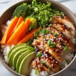 Pair your chicken bowls with simple sides like steamed broccoli, roasted snap peas, or a crisp cucumber salad. These options offer a cool, fresh contrast that complements the warm, sticky chicken, making the meal complete and satisfying.
