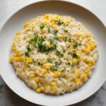 This Sweet Corn Risotto is a creamy and comforting Italian-inspired dish featuring tender Arborio rice cooked slowly with sweet corn kernels, vegetable broth, and a touch of white wine. Finished with Parmesan cheese, butter, and fresh parsley, it’s perfect as a satisfying vegetarian main or side dish.