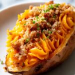 This Delicious Sweet Potato Shepherd’s Pie is a comforting and nutritious twist on the classic dish, featuring a creamy mashed sweet potato topping over a hearty lentil and vegetable filling. Made with wholesome ingredients and seasoned with fragrant herbs, it’s a perfect vegetarian and gluten-free meal suitable for family dinners.