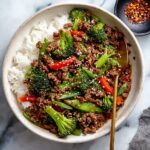 This Teriyaki Beef Bowls recipe combines savory ground beef with crisp vegetables and a flavorful homemade teriyaki sauce. Served over steamed rice and garnished with green onions and sesame seeds, it’s a quick and satisfying meal perfect for weeknight dinners.