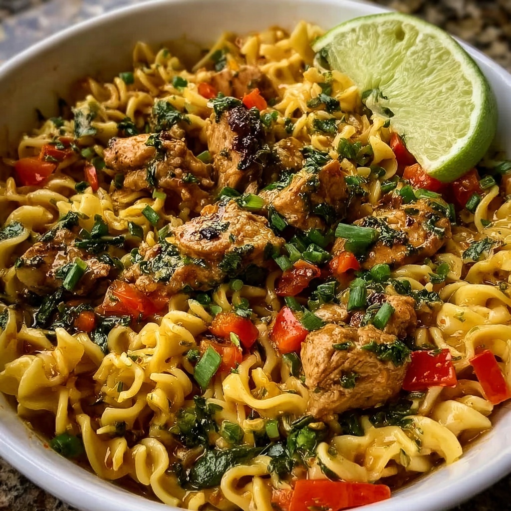 Ladle the steaming ramen into deep bowls, ensuring each serving boasts plenty of chicken, vegetables, and noodles. Top with sliced green onions, fresh cilantro, and crushed peanuts to add texture, brightness, and an herbaceous finish. Don’t forget the lime wedges on the side; the gentle squeeze of citrus just before eating elevates every single spoonful to a new level of deliciousness.