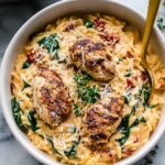 This Tuscan Chicken Meatball Orzo recipe combines tender, flavorful chicken meatballs with creamy orzo pasta in a rich, herb-infused sauce featuring sun-dried tomatoes and fresh spinach. Perfectly cooked on the stovetop, this comforting meal is ideal for an easy weeknight dinner with Italian-inspired flavors.