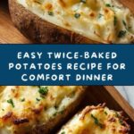 These Twice-Baked Potatoes are a comforting and flavorful side dish featuring fluffy mashed potato filling mixed with sour cream, butter, cheese, and green onions, all baked twice to achieve a golden, cheesy crust. Perfect for family dinners or holiday meals.