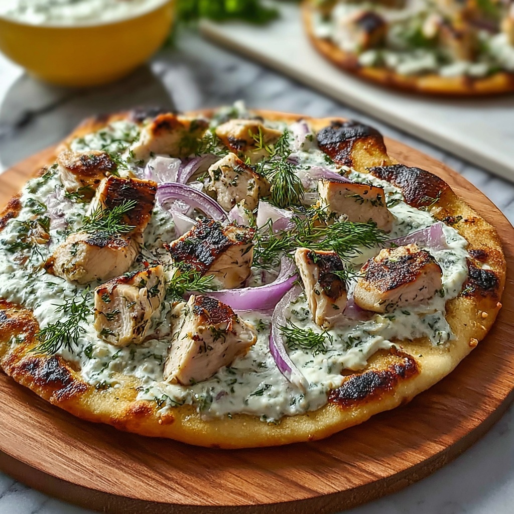 Adding fresh herbs like parsley or dill right before serving makes a huge difference—those bright green flecks add a lovely visual contrast and a fresh herbal punch to balance the creamy and savory flavors. Don’t be shy with the tzatziki drizzle, as it really makes the pizza pop.