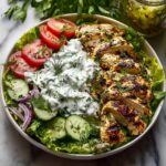 This Tzatziki Chicken Salad is a refreshing Mediterranean-inspired dish combining tender cooked chicken with crisp romaine lettuce, grape tomatoes, pepperoncini, Kalamata olives, and red onion, all generously dressed with a creamy homemade tzatziki sauce and topped with crumbled feta cheese. It’s a light, flavorful, and easy-to-prepare salad perfect for a healthy lunch or dinner.