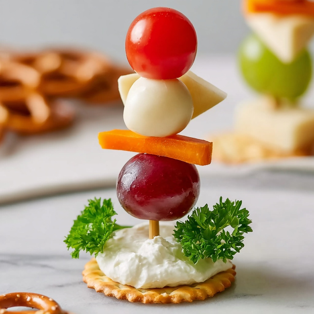Up Up Away Hot Air Snacks are a fun and colorful finger food featuring cherry tomatoes, grapes, cheddar cheese, and mini mozzarella balls threaded onto pretzel sticks to resemble hot air balloons, served on crackers with hummus or cream cheese. This no-cook appetizer is quick to assemble, perfect for parties, kids’ snacks, or light gatherings.
