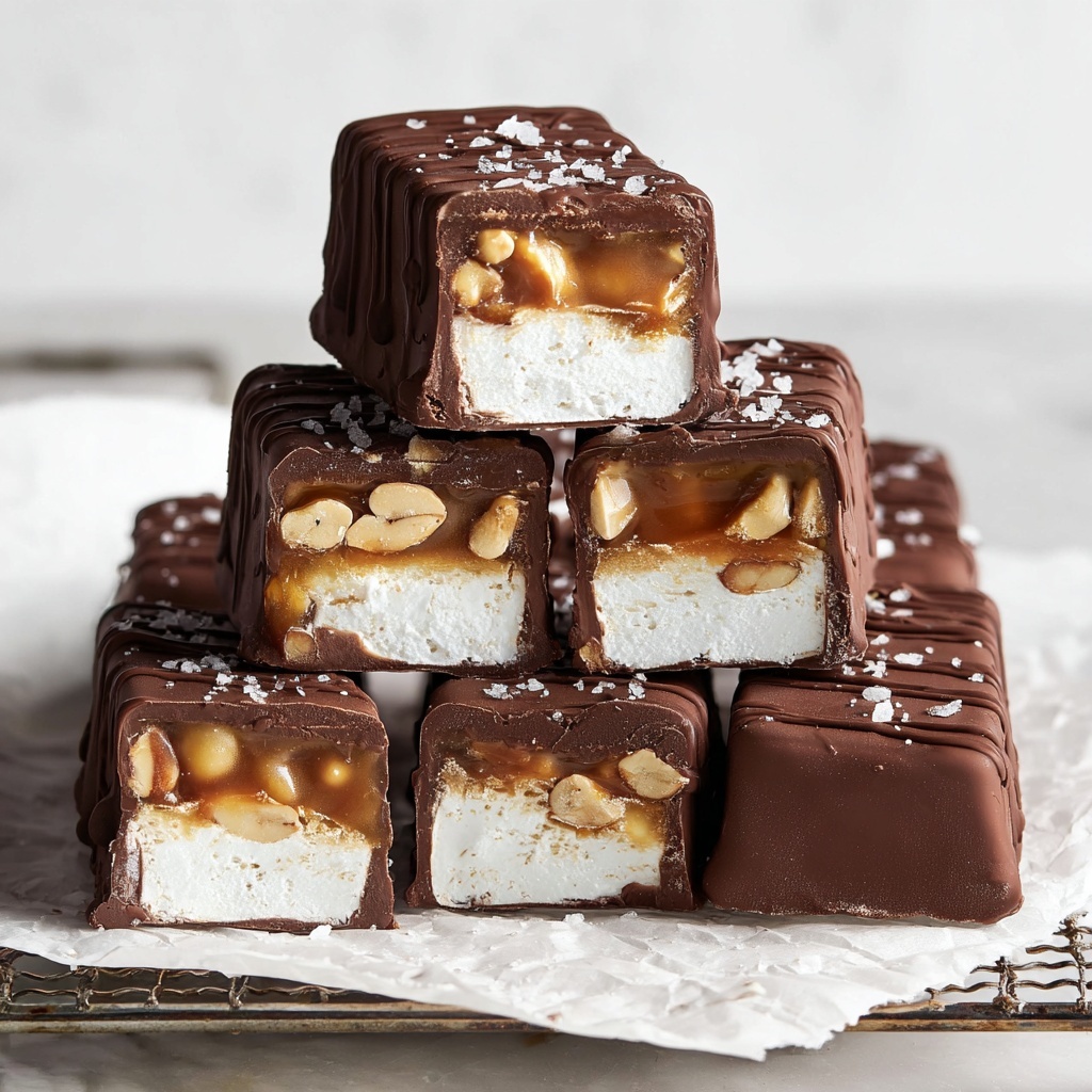 13. Salt & Set: Sprinkle sea salt over the chocolate-coated bars and allow them to set for 10 minutes before serving.