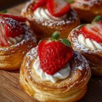 This Easy Vegan Strawberry Danish recipe offers a delightful plant-based twist on a classic pastry. Using flaky vegan puff pastry filled with a sweet and tangy homemade strawberry compote, these danishes are brushed with melted coconut oil for a golden finish and optionally topped with a smooth vegan vanilla icing. Perfect as a delicious breakfast treat or sweet snack, these danishes are quick to prepare and bake to perfection in under 30 minutes.