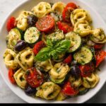 This Zesty Italian Tortellini & Veggie Pasta Salad is a vibrant and refreshing dish perfect for a quick lunch or a light dinner. Featuring cheese tortellini tossed with fresh cherry tomatoes, cucumber, bell pepper, red onion, black olives, and fragrant basil, all coated in a tangy Italian dressing. Served chilled, it’s an easy crowd-pleaser that combines flavors and textures beautifully.