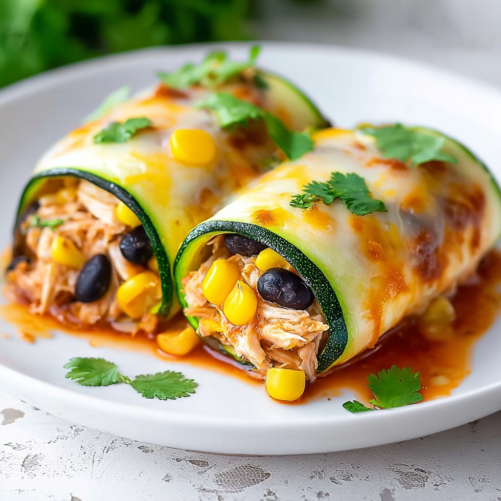Arrange the roll-ups in a colorful baking dish to highlight their vibrant zucchini and cheese topping. Serve them on individual plates garnished with a wedge of lime and a sprinkle of chili powder for a festive touch. Alternatively, stack a few for a layered enchilada-inspired presentation that looks as lovely as it tastes.